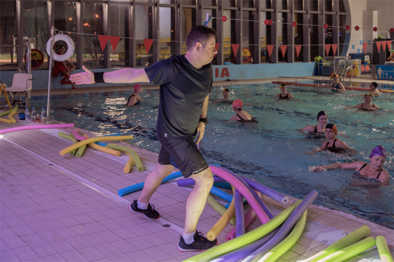 Trening w wodzie wzmacniający mięśnie, poprawiający równowagę i kondycję przy minimalnym obciążeniu stawów.